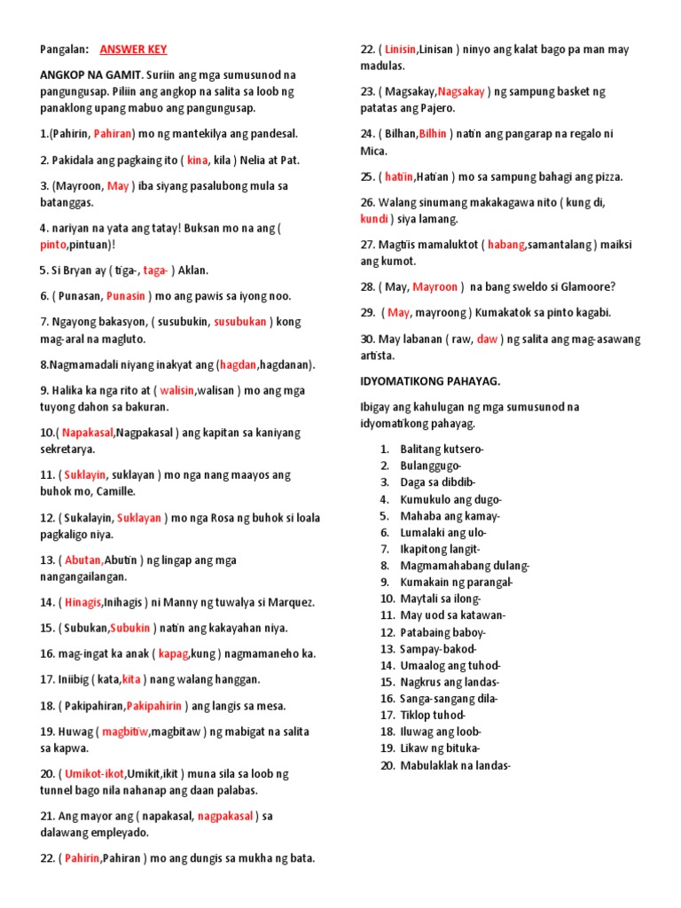 In a previous post Wastong Paggamit ng ng at nang I discussed the uses of the words ng and nang. Magkasamang nagungusap at kinakausap goes with someone you. The second page of each file is the answer key.